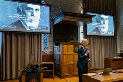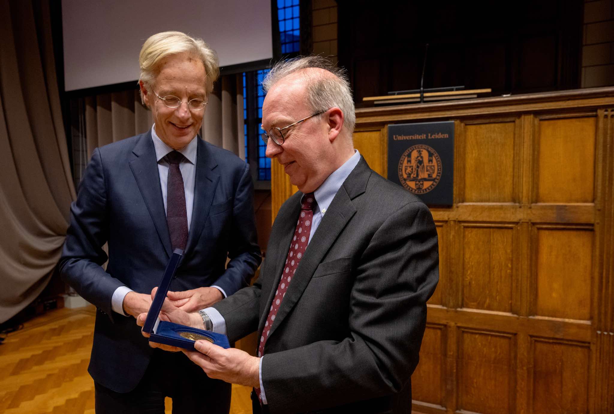 the ceremony took place during the 100 Years of Spin Symposium in the Academy building of Leiden University.